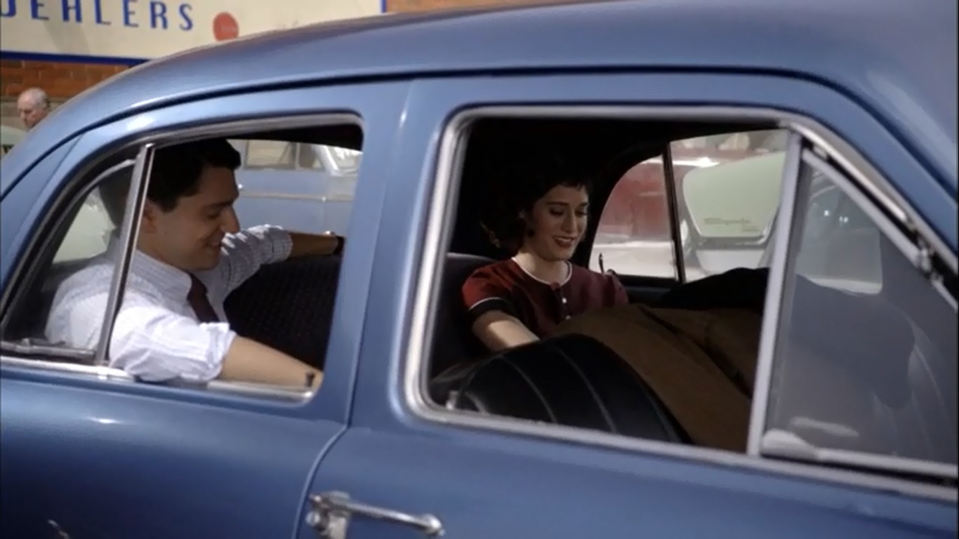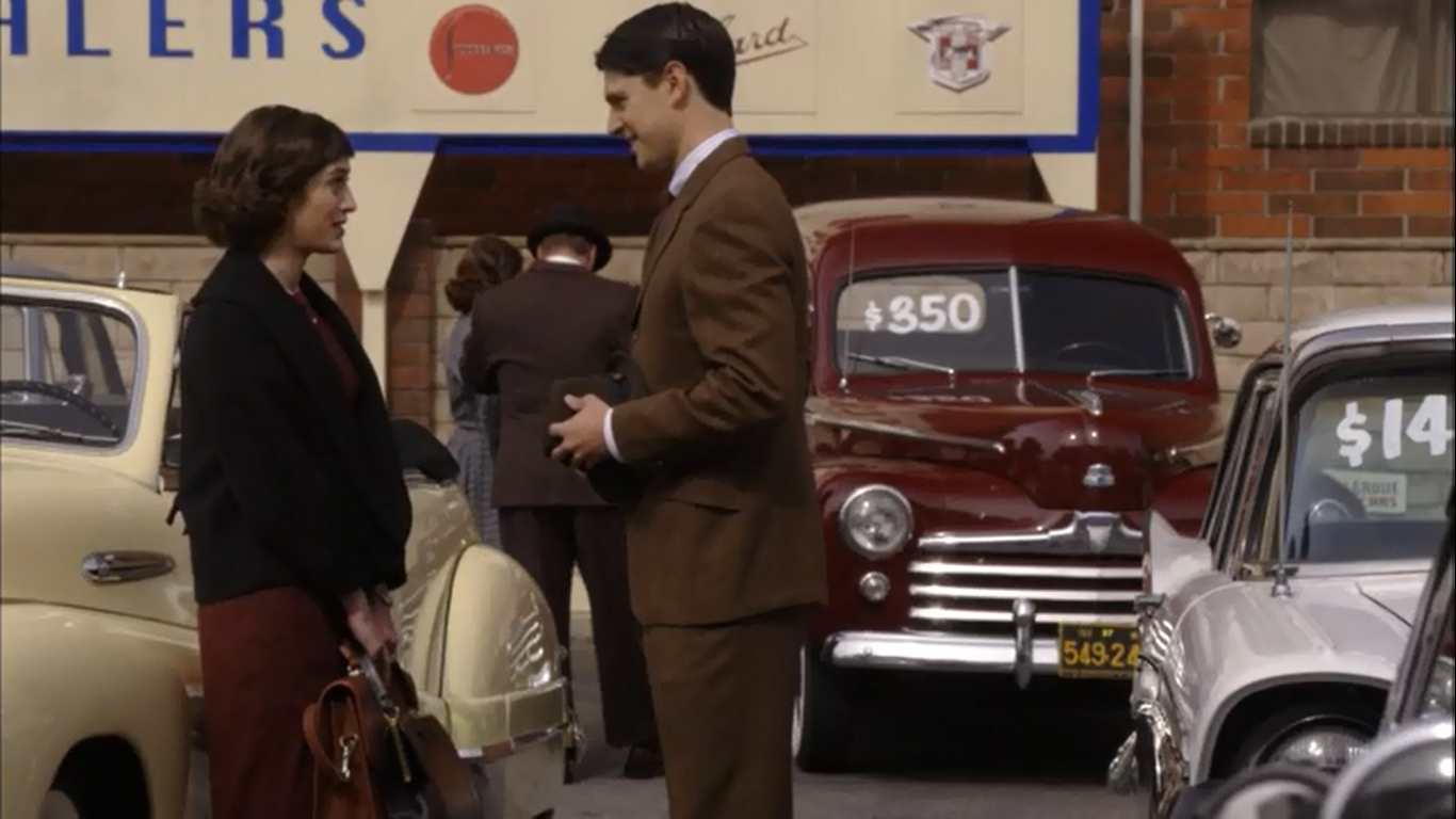 But Virginia is too busy having girl talk with Dr. Haas in the back of one of the cars. Haas, being a guy who still can’t manage to get over how he feels about one particular woman, asks why Virginia didn’t pursue her first boyfriend. As her boyfriend became a farmer later on in life, Virginia felt she was destined for more, including this very nice car, which she’s all ready to purchase. Trouble is she needs Bill to cosign for it, as the hospital does not provide loans for single women. Haas, at the ready, offers to sign it in Bill’s place since he’s already there. Also, if Virginia takes more time, the car may end up going to the curious couple observing the vehicle.