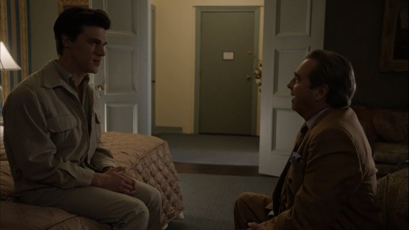 After her breakup with Austin, Margaret takes solace in drinks at a hotel. And who else is sitting a few seats away from her but Dale? Mrs. Scully asks whether Dale’s waiting for a mystery woman. Suddenly Barton! And, of course, the situation turns awkward as Barton tries to spin the situation: Dale is an up and coming student with a bright future in pathology, so Barton left his cancelled board meeting to meet up with him. Margaret doesn’t buy it, but leaves Dale with the parting words that he should stay single to avoid the sting of being let down by someone who loves you the most. When she leaves, Barton catches up with her and confesses everything: Dale gets him prostitutes. Yep. That’s how the story goes.