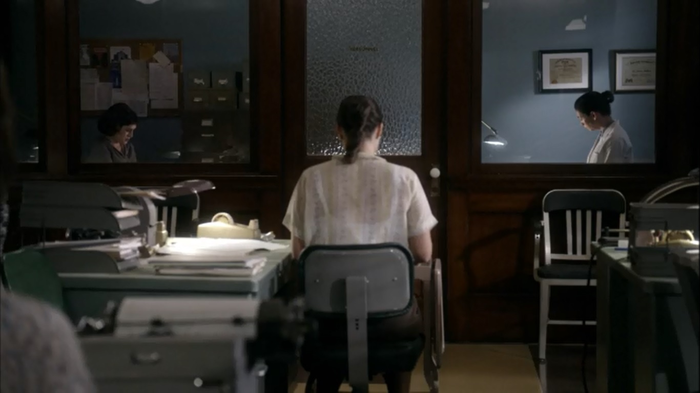 I’ll get to Virginia in a minute, but for now, Jane and Libby, who I put together since there’s not a lot they get to do individually. Credit where credit is due, Jane has managed to stick it out despite Bill getting her name wrong and barking orders that he assumes she’ll always understand. Much like early introduction of characters for later use, it makes sense that Jane is used to Bill’s demands by now. It would be different if this was the first time she had to take Virginia’s place, but given how she became the permanent new secretary back in “All Together Now,” she’s seen Bill and Virginia work long enough to understand how things operate.