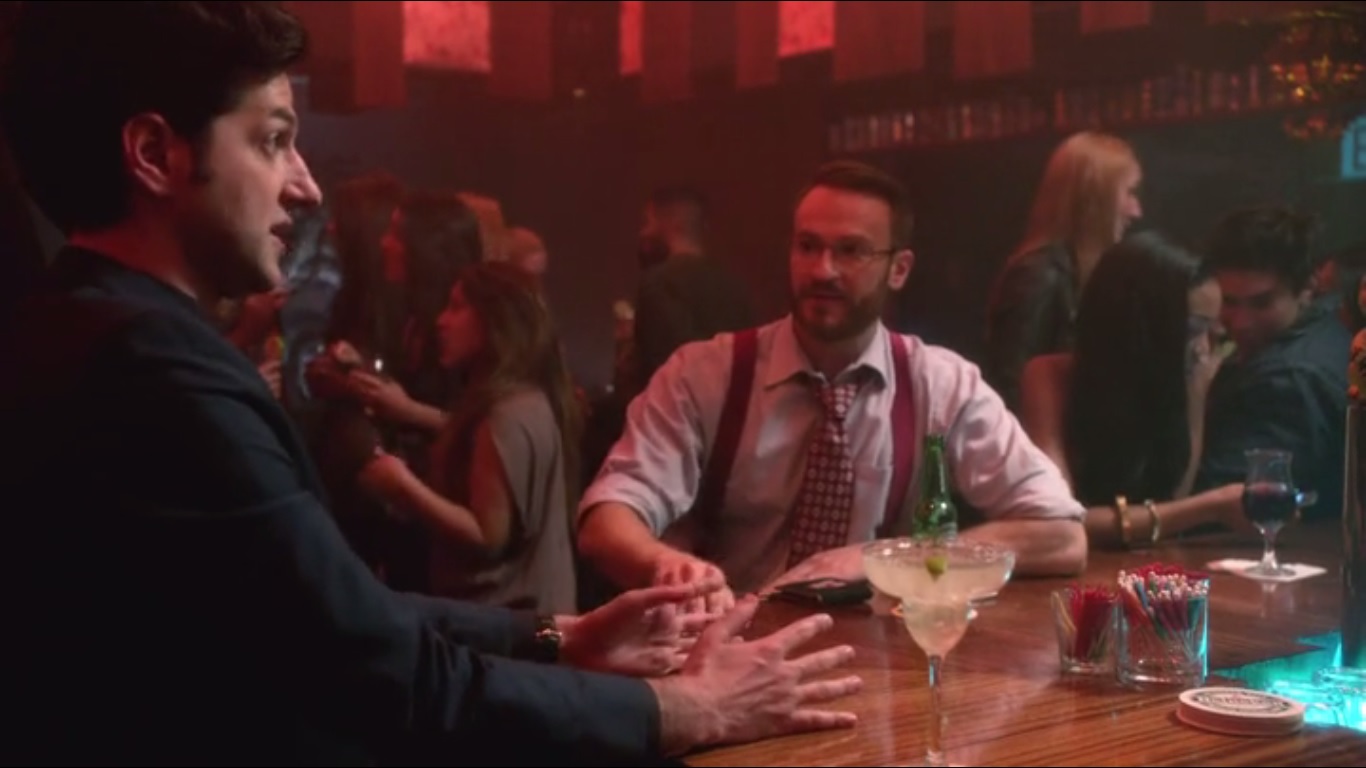 At a bar, Doug calls Clyde again when he finally arrives. More frantic than usual, Clyde orders a drink but is in no mood to wait. He rants on and on about Monica and how she’s driving him up the wall, but then he takes his anger out on the bartender. Clyde just wants out and has an interview with Booz Allen, but before the rampage can continue, he receives a phone call from Monica, informing him to be back at Kinsley Johnson. Like a neutered man, Clyde complies without argument.