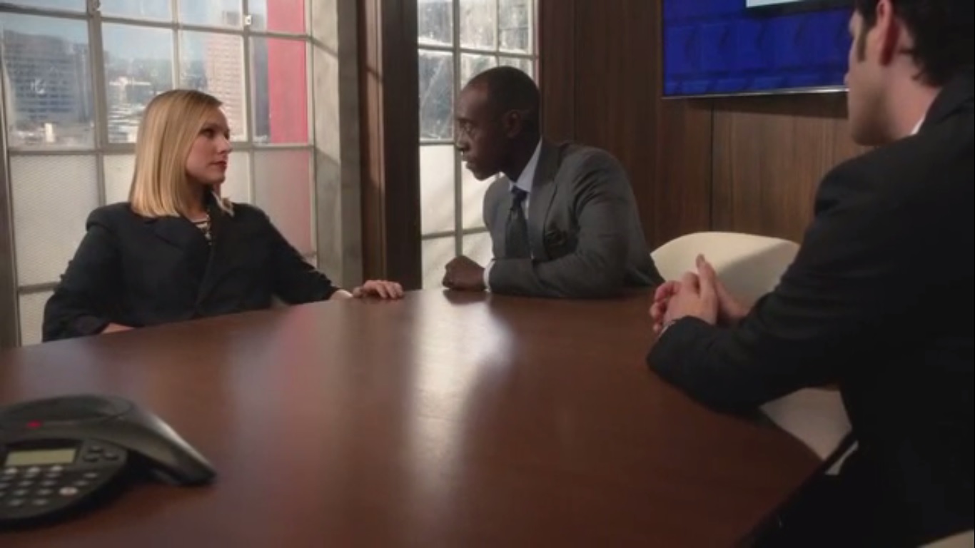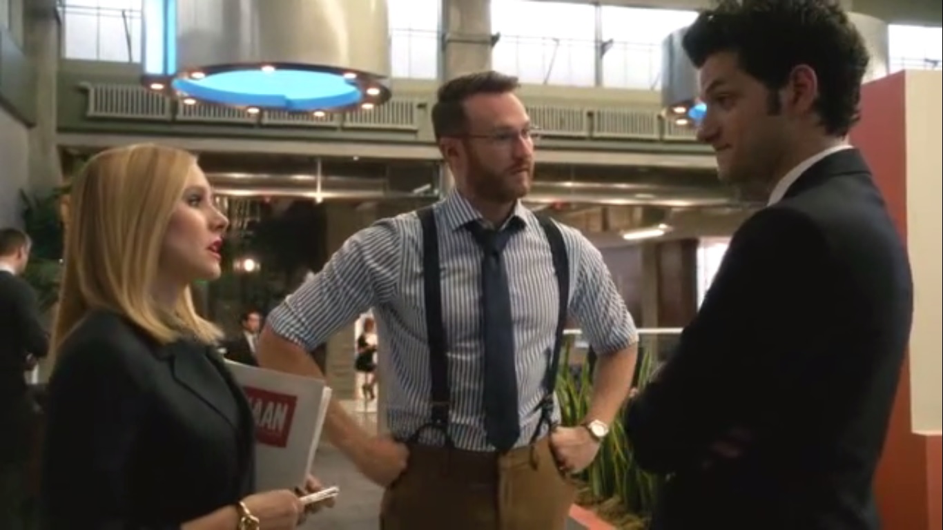 The two make their way to Jeannie’s desk and Jeannie suggests that if Doug is so wound up, he should just do it then and there. Not in her office, though! Also, he can’t take a mental picture of her. Well, heck, that takes all the fun out of it if I’ve got Kristen Bell in the same building as me and I can’t take a mental picture of her.