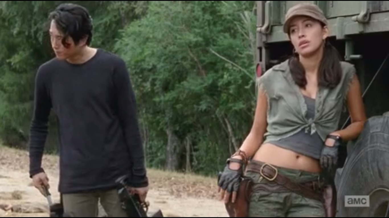 And then there’s Glenn and Tara. Glenn’s pretty much repeating the same mantra he had last week: Maggie’s out there and he’ll find her. I get his determination, but he doesn’t progress beyond that. After meeting three other survivors, one would think that both he and Tara would at least take the time to consider the possibility of finding out what caused this mess, something that hasn’t been touched upon since the CDC at the end of Season One. For now, though, Glenn has a one track mind and it only leads to Maggie, so any insinuation that she’s long gone doesn’t even enter his mind.