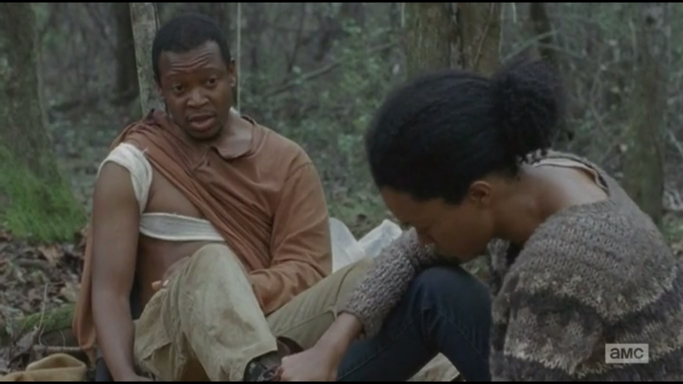 Bob asks Sasha why she thinks that Tyreese is dead. Isn’t it possible that, if he knew about Terminus, he’d go for it? Or is Sasha just afraid to find out if he’s alive. Sasha’s really disappointed Bob. He once thought she was the toughest woman around. Now, not so much.