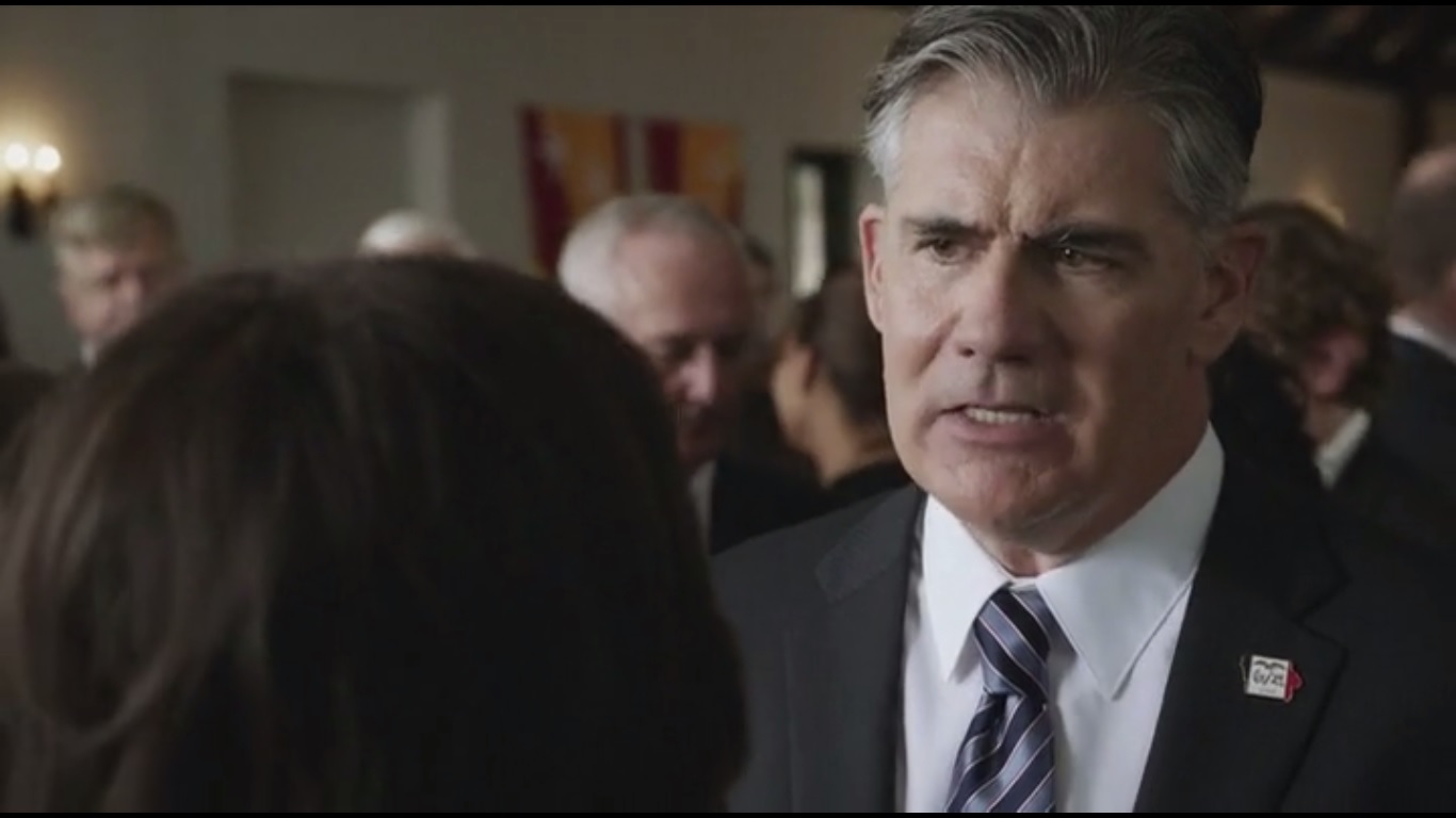 Back in Iowa, Selina leaves the book signing for a bit to head to her hotel room. Signing books can only be entertaining for so long. Makes you wonder how any of our current real life politicians, past or present, are able to stomach this sort of thing. She tries to call Gary, just as he’s reading the wedding vows, so he does the polite thing and wraps up the vows as soon as possible just before texting and walking off. Ben pays a visit, as he was on the way to Congressman Rick Cowgill’s funeral. When Gary finally responds, Selina ignores the call. Huh.