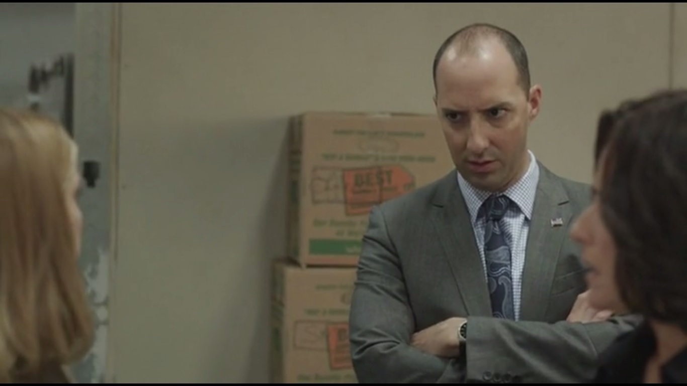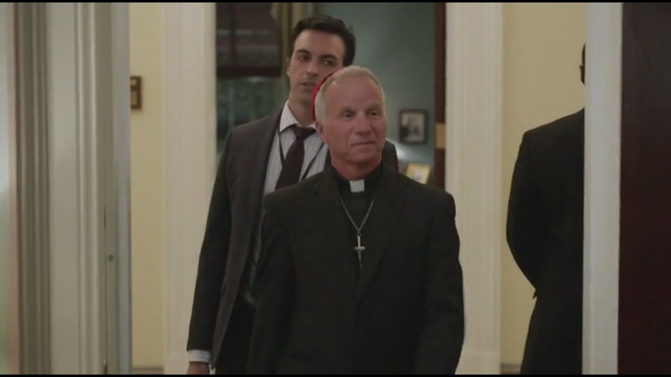She sends him home just as Cardinal Branzini, played by Michael Salconi, arrives. Gotta appeal to the Catholics, after all. Amy delegates tasks: Gary is to bring in Rachel Hordenthal, from Planned Parenthood, Mike will steer in Michael Cunningham, who is pro-life and should stay away from Hordenthal, and Sue will help Kent finish polling.