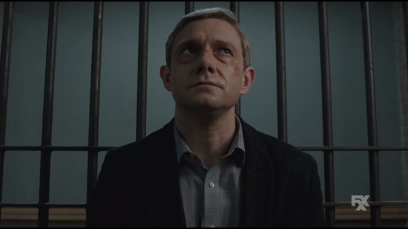 For Lester, it’s not about kill or be killed, but get out by any means. His motivation is desperation. He let himself get bullied by Sam Hess, he let himself get seduced by Malvo’s rhetoric and now he let himself get arrested in hopes of escaping his captors, only to wind up right back where he started when Mr. Numbers and Mr. Wrench end up in the exact same cell as him.