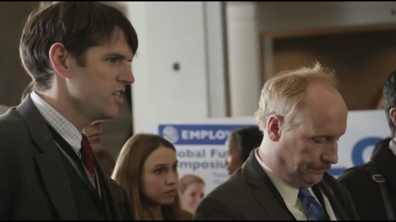 While Selina mingles, Amy-before Dan, mind you- breaks the news that a shooting took place nearby. Emily La Fuente, a journalist that Selina never liked, was killed, but the team believes the shooting will overshadow the jobs announcement. Yeah, why’d this woman have to go off and get killed the same day the Vice President was to make a major announcement?