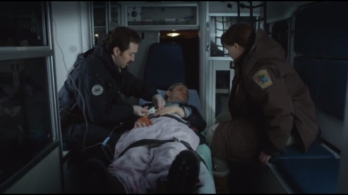 Lester’s hand injury gets the better of him and he passes out while in holding. Riding along with him to the hospital is none other than Deputy Solverson. She has a few more questions regarding Sam Hess, but Lester’s just babbling incoherently. He does spit out that he never paid to have Hess killed, though.