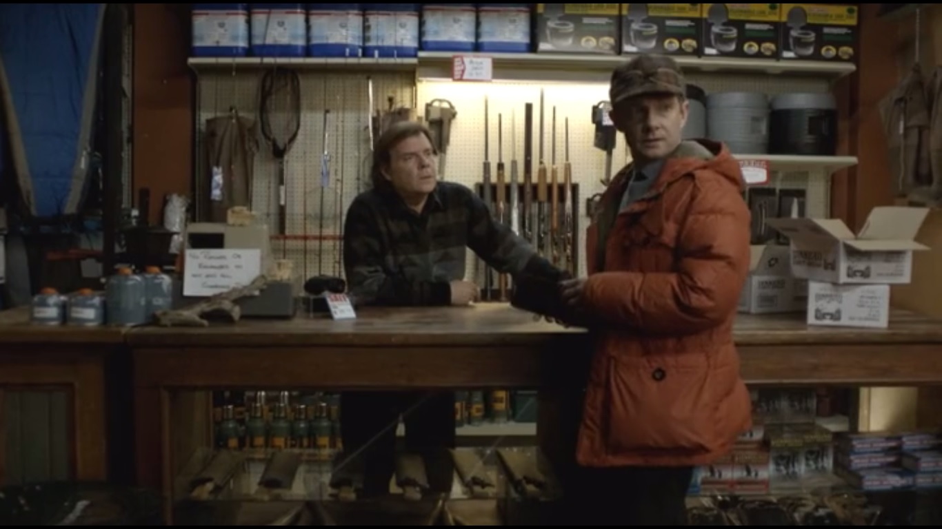 Lester goes through some irregular socks before finally deciding on a reasonable price: $3. You drive a hard bargain, Mr. Nygaard. Regardless, the clerk throws Lester a better deal: pay $55 for the socks and he’ll throw in a 12-gague shotgun. Now that’s a bargain.