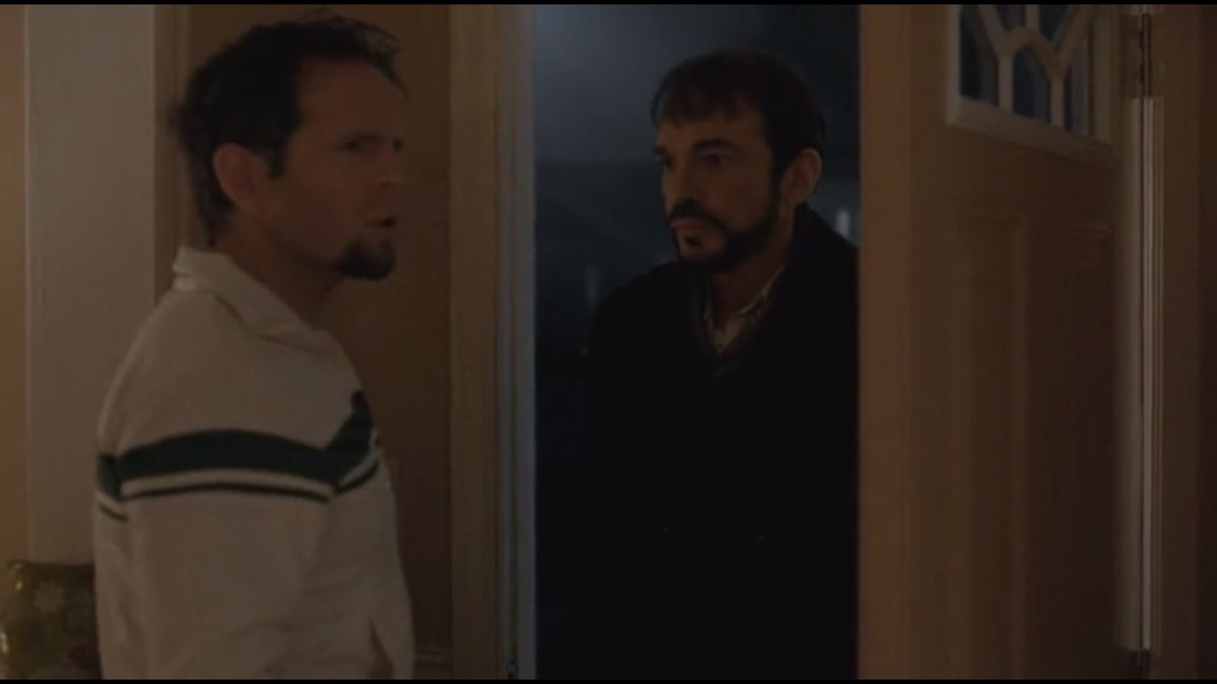 Back at the Grimly residence, Gus has a talk with his neighbor from across the way, Ari Ziskind, played by Byron Noble. Gus shares his ethical dilemma: he knows a dangerous man that has everyone fooled, but he can’t prove it. He could, but unlike Solverson, he doesn’t have the detective instinct. He wonders if he should put himself in harm’s way.