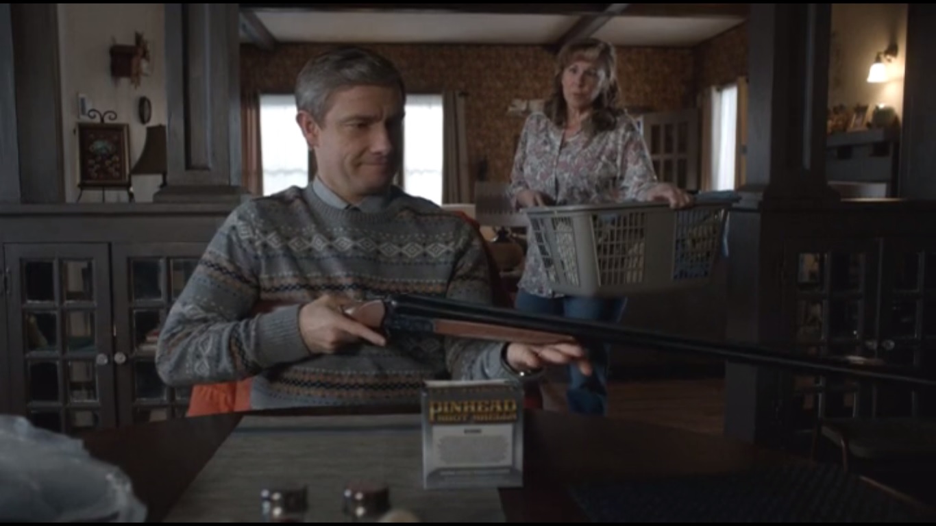 In the present, however, he’s let himself be manipulated by Lorne, which has started him on the downward spiral that he continues sliding down this week. Just as Lorne poisoned his mind, the shotgun pellet has continued to infect him ever since that horrible night when everything changed. He’s not willing to assert himself because he has nowhere to turn. After all, he didn’t want his brother to call the police to let him know he’d been kidnapped. Sure, there are times when Lester fights when he’s literally backed into a corner, such as when he tased Mr. Numbers last week, but those moments don’t overshadow how much of a coward Lester is, and Martin Freeman has always been pretty good with conveying emotion in his facial expressions, not unlike he did on The Office or even Sherlock. The man is just too passive to stand up for himself. Too bad he can’t use Chaz’s gun to make more big holes and work out his aggression.