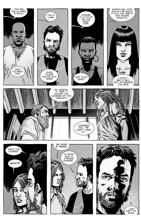 So Robert Kirkman has taken us two years past the events of “All Out War” and shown us what life is like for the folks in Alexandria. The end result is a full-fledged, progressive community that shows signs of civilization coming back from extinction for the moment. As is always the case with The Walking Dead, peace comes before danger.