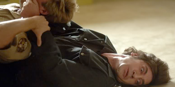 Either way, Malvo emerges from the stall with a belt at the ready and strangles the officer.