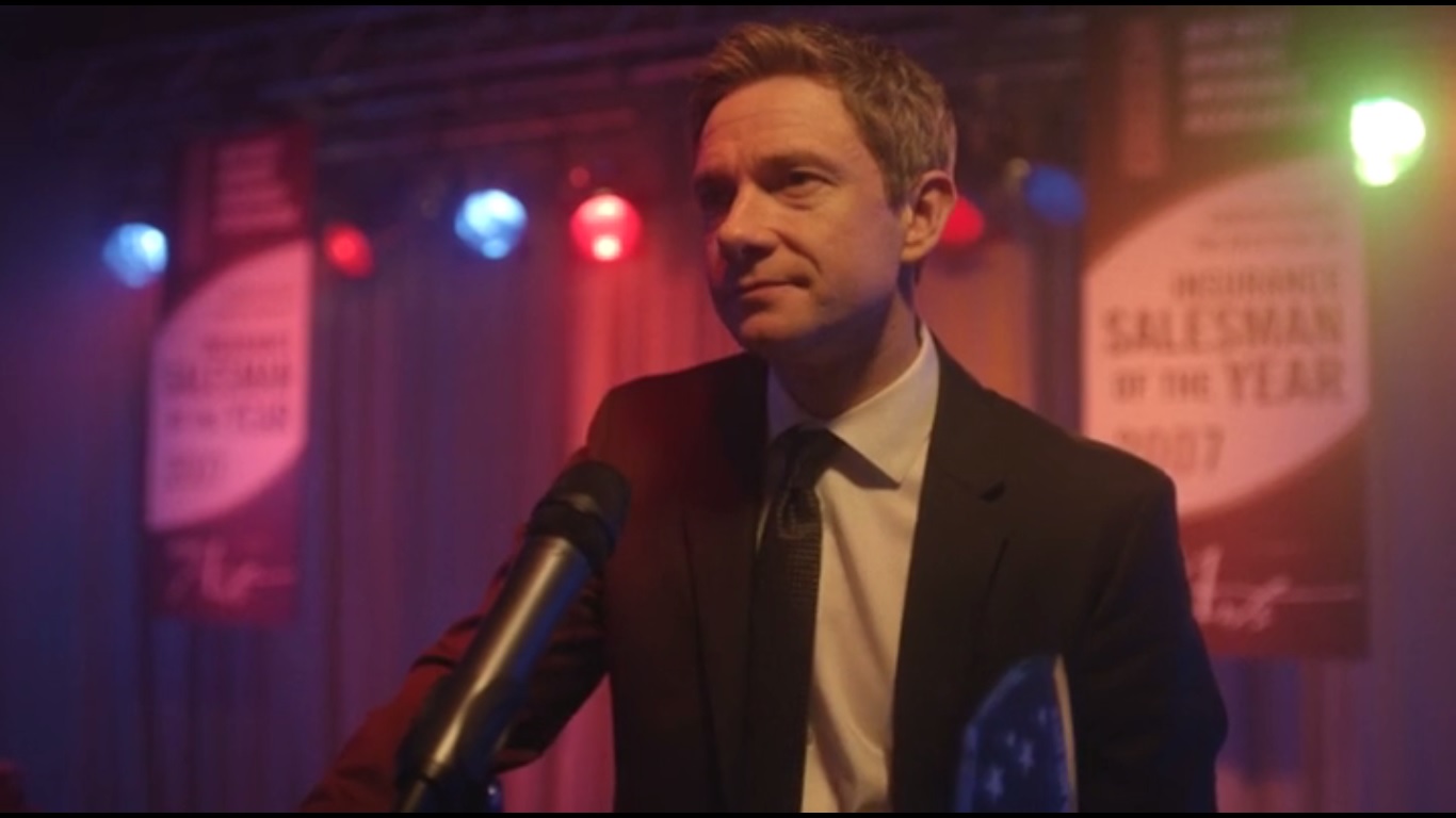We then cut to a ritzy looking hotel for the 2007 Insurance Salesman of the Year. It’s been a banner year for insurance companies, as loss ratios are down! But there can only be one winner, and the Salesman of the Year is none other than Lester Nygaard!