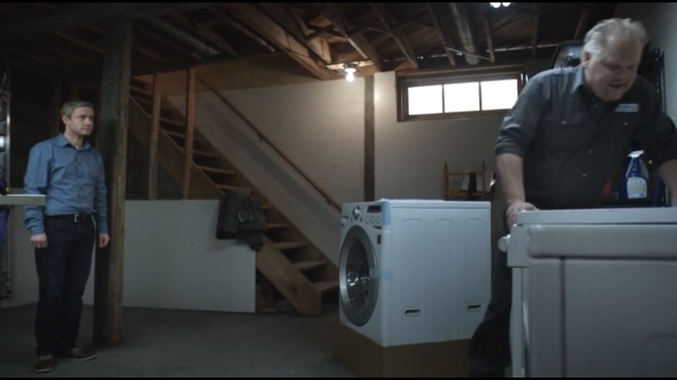 The episode begins with Lester receiving a brand, spanking new washing machine. The delivery man, played by Marty Antonini, is glad Lester is getting a new machine, as the current model he uses has been recalled.