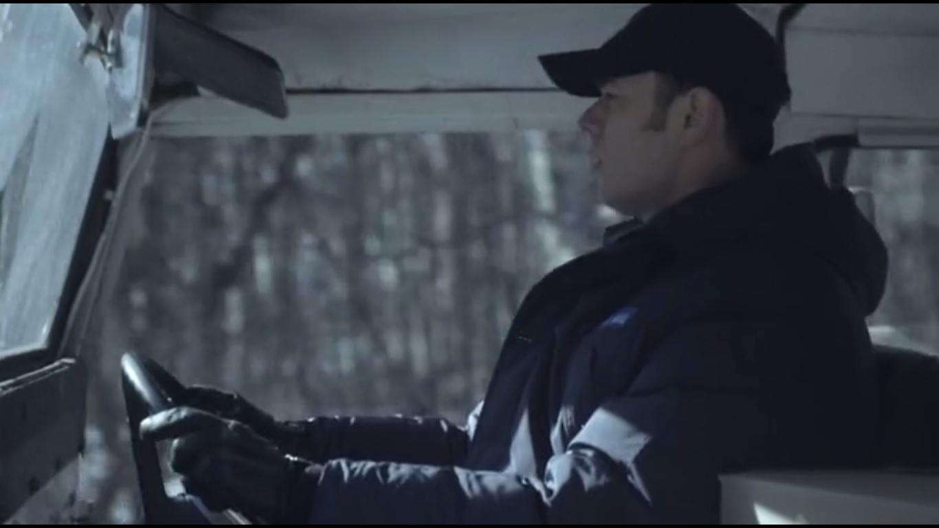 The camera pans across the woods for a considerable amount of time before we jump forward one year later and reunite with Gus Grimly: Postal Worker. Greta radios in to remind him about dinner.