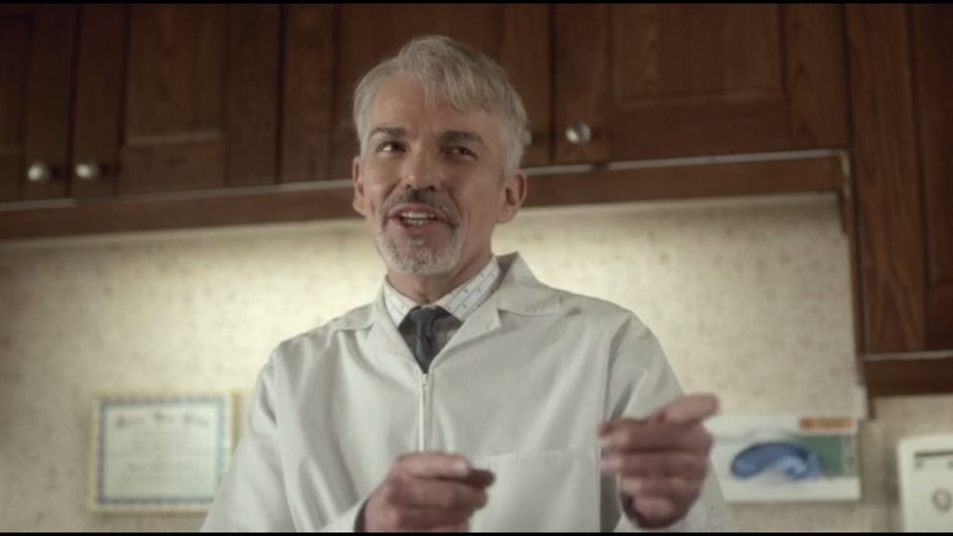 The episode begins in a man’s mouth. Yeah. In Kansas City, Missouri, a man is receives dental care, courtesy of Lorne Malv-oh, I mean, Mike. When the work is done, in pops Mike’s pal, Burt Canton, played by Stephen Root, who plans to attend a party Malvo is hosting that evening.