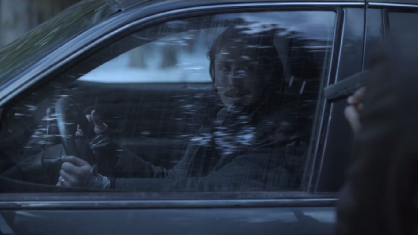 Outside, we get a brief look at Malvo breaking into a car and stealing a book of codes from the glove compartment.