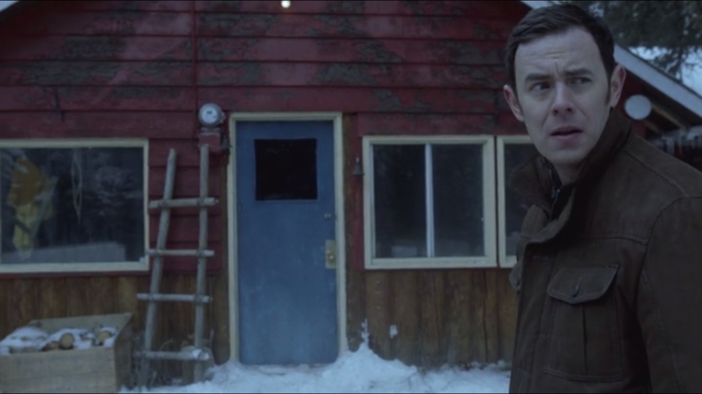 As Gus continues along, he spots a lone wolf in the middle of the road. He follows it to a cabin, where, from a safe distance, he spots Lorne Malvo exiting the cabin and driving off in a red BMW. When he feels Malvo is a considerable distance away, Gus, instead of calling the police, heads inside the cabin.