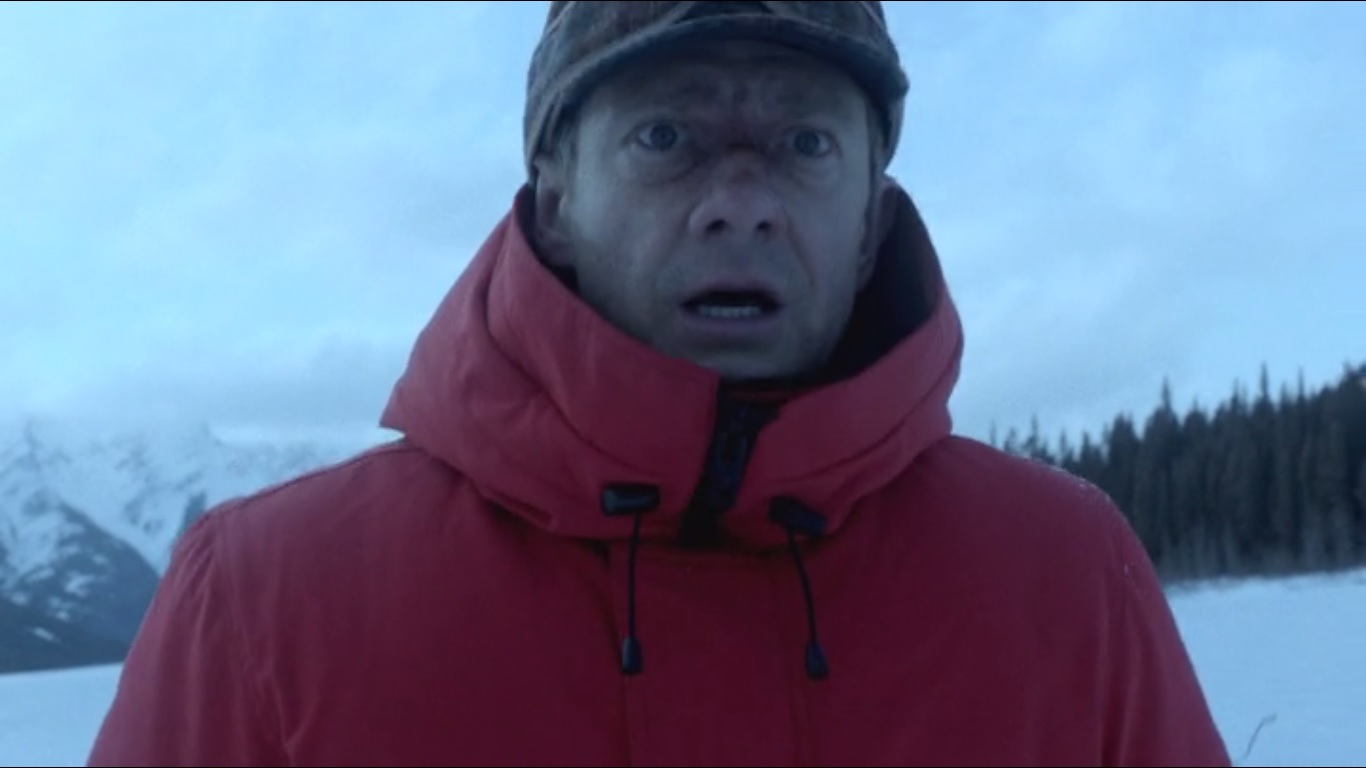 Of course not. Lester speeds off, the officers in pursuit behind him. Lester’s snowmobile crashes and he’s forced to head the rest of the way on foot. He’s so desperate to get away at this point that he pays little attention to the notice of thin ice or the officers’ warning him to stop.