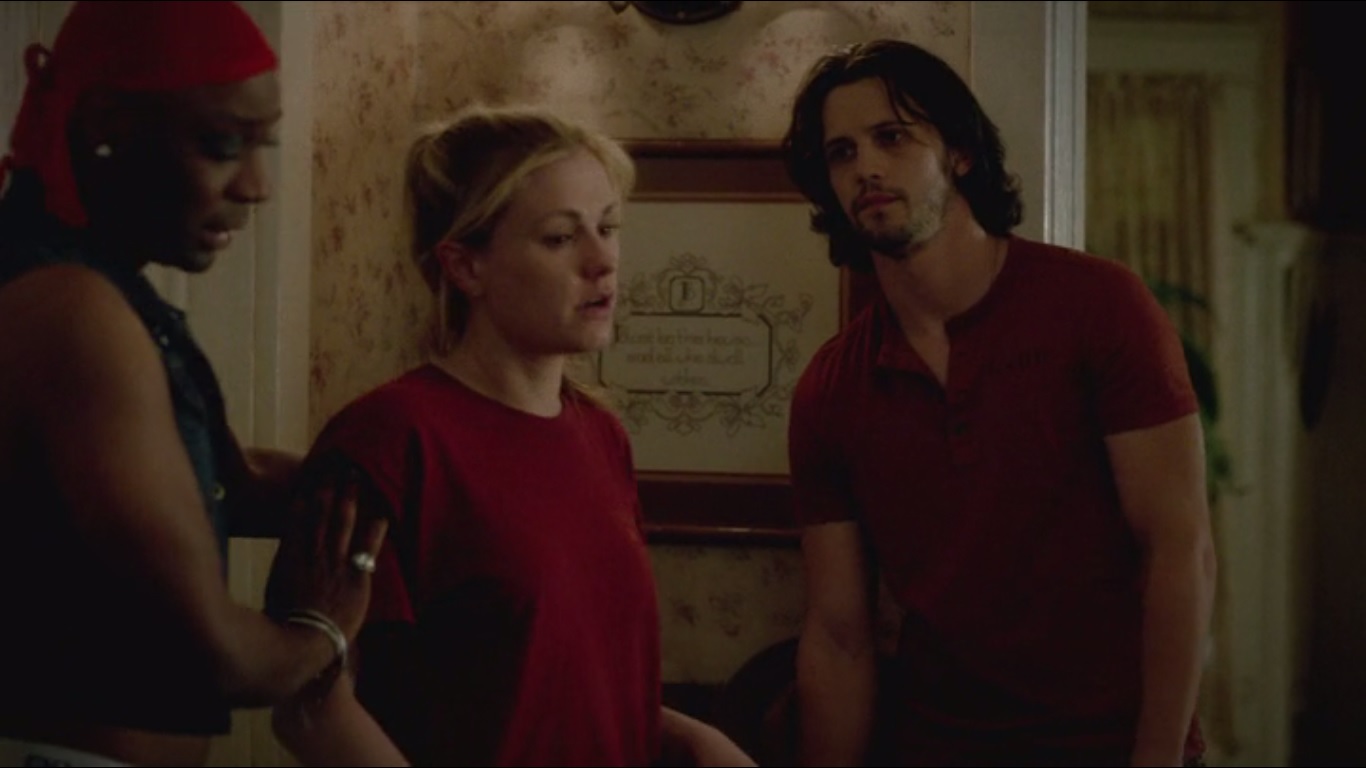 Time passes and Sookie later heads downstairs, only to find Jackson, his lady friend, James and Lafayette there. The house has been prepped, almost as if Sookie were about to have a party. Guess what? They’re throwing a party for the entire town! What better way to celebrate life after a day of death and sadness?