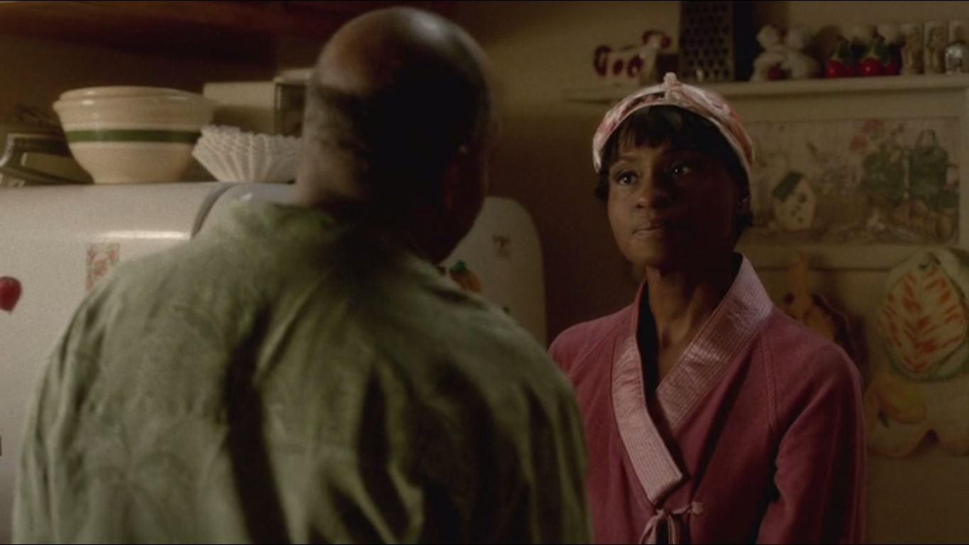Lettie Mae wants to attend the party. Reverend Daniels says no. While the reverend is conveniently looking away from Lettie Mae and focusing on his food, Lettie Mae spots some allergy medicine. That’s a scene.