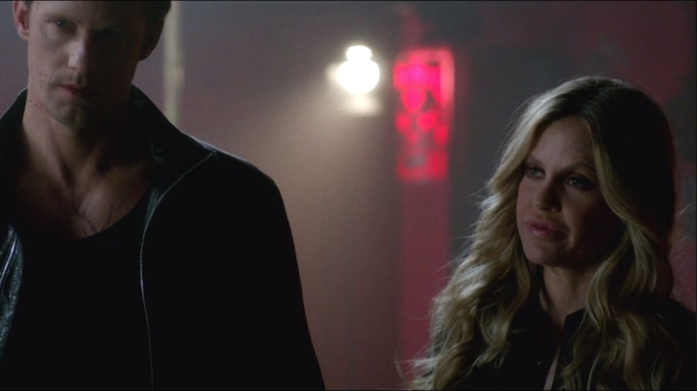 Back in Dallas, Texas, Eric and Pam get ready to infiltrate a “Republicunt” stronghold. You know, in the politically charged world that we live in today, where so many feel they must be one way or the other, I wouldn’t be surprised if the term “Republicunt” didn’t originate from True Blood. But I digress. When Eric removes his shirt, Pam sees the veins making their way all across his body, indicating that he’s advanced to Stage Two of the virus. Not one to stop with the plan, Eric simply tells Pam to cover the marks that would be visible.