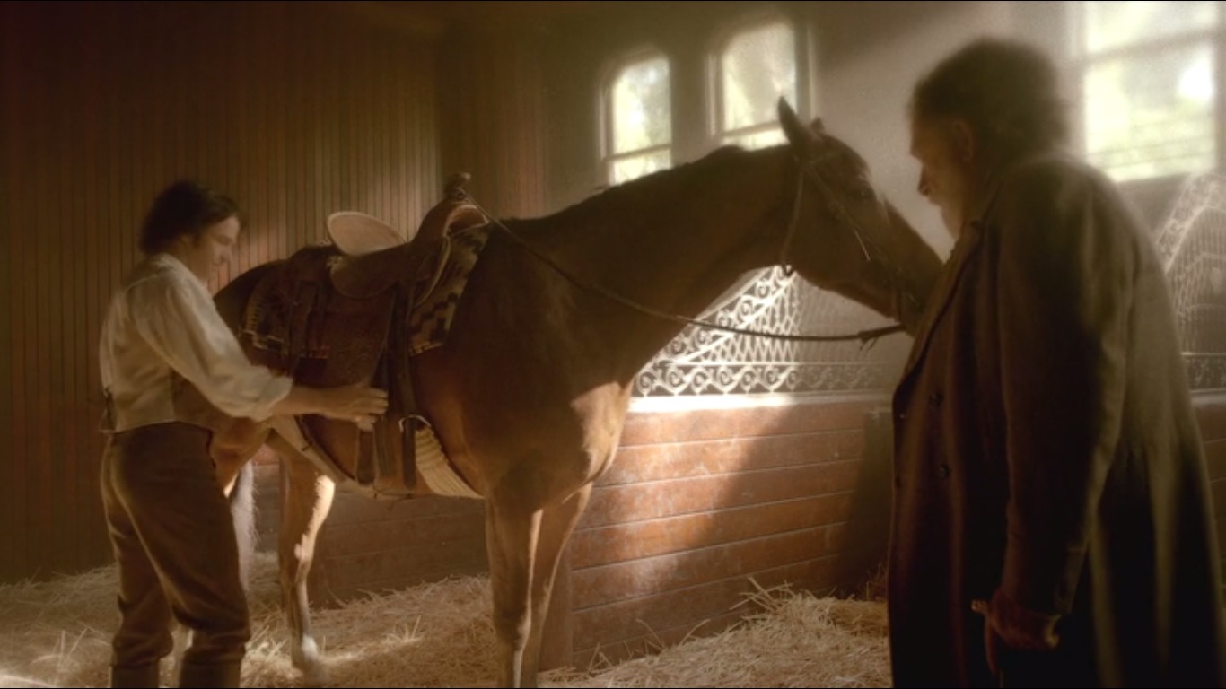 As Bill dreams, we flash back to 1855, where he speaks with his father, William Compton Sr., played by Michael Rothhaar. Compton Sr. wants his son to marry Caroline Shelby, even though she and her family haven’t been in town for very long. Oh, and for land purposes. But mostly for the land.