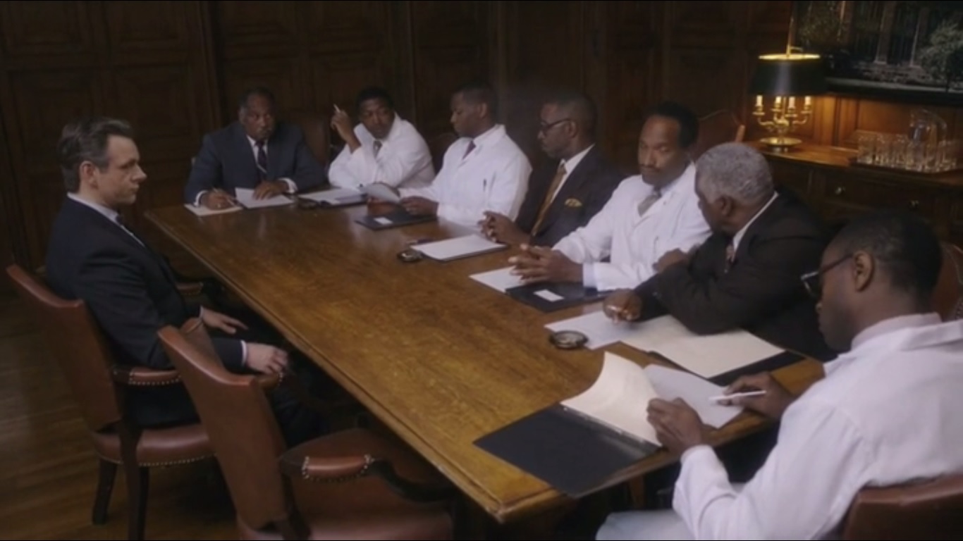 Anyway, Bill gets to work with another subject: Leslie, played by Mariel Neto. Leslie is nervous, but Bill is livid when he goes to the other side and sees that Doug has brought four doctors with him. Bill and Doug go into the hallway, with Bill declaring that his work is not like some stag film played in a frat house. His work will not be mocked. He wants the exam room cleared, demands that Doug stay away from it and that Virginia be authorized to work, starting tomorrow.
