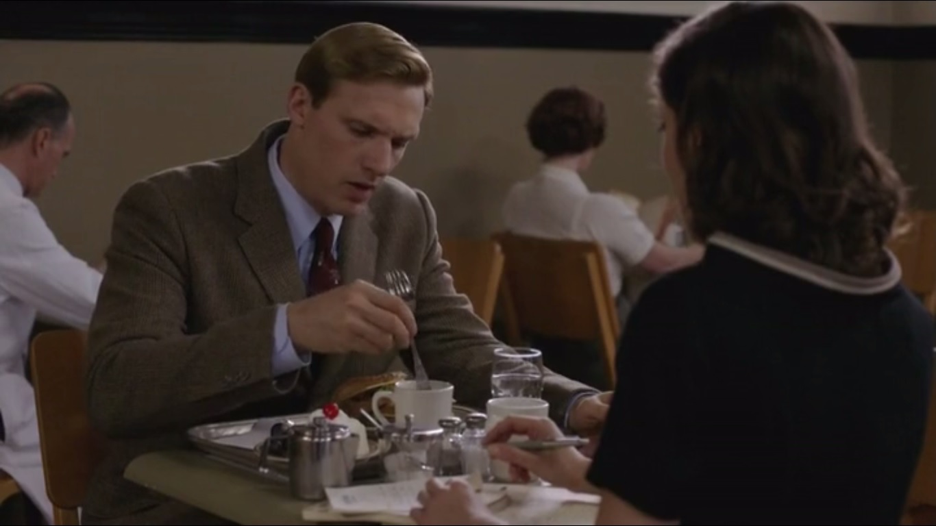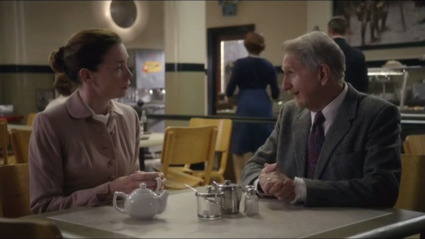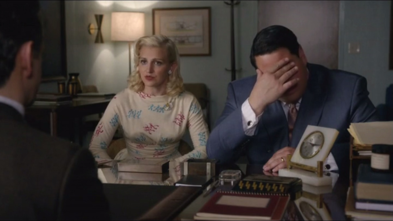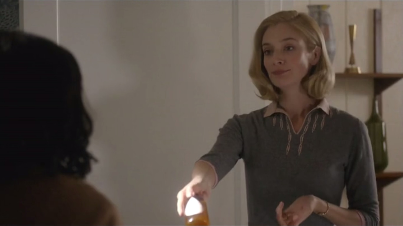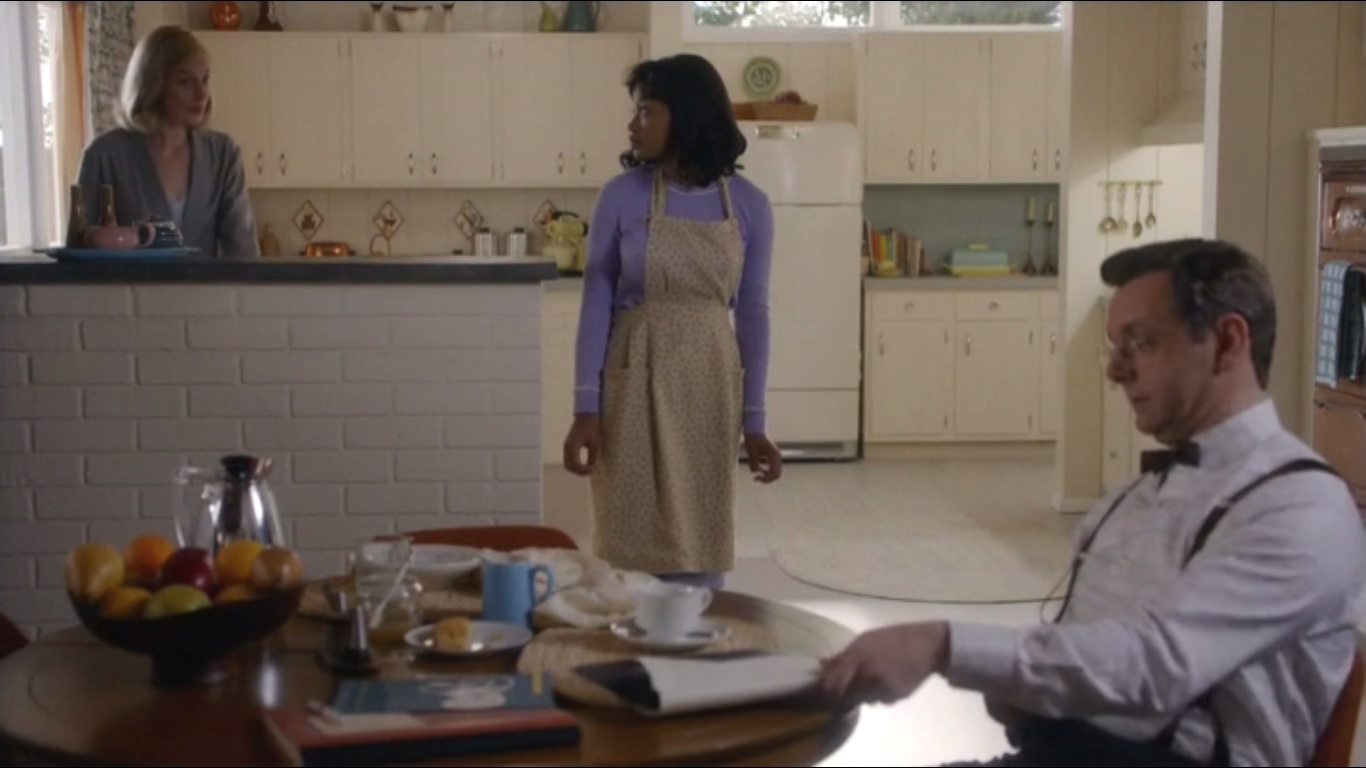 And what the hell is up with Libby? She’s trying to be the every woman, but she’s alienating the closest thing she’s had to a connection with the way she treats Coral. She tries meeting with the wives of Bill’s colleagues, but that doesn’t amount to anything. In effect, she has little lasting impact on Bill’s life right now. The house is her domain, but that’s all she has right now. Is Coral supposed to be her competition? I don’t understand where all this restrained anger comes from. She says that her partnership with Coral is based on trust, but it’s not genuine. She takes every opportunity to shut Coral down, even telling her that the wives at the luncheon aren’t interested in her family history, even though they just asked about her hair.