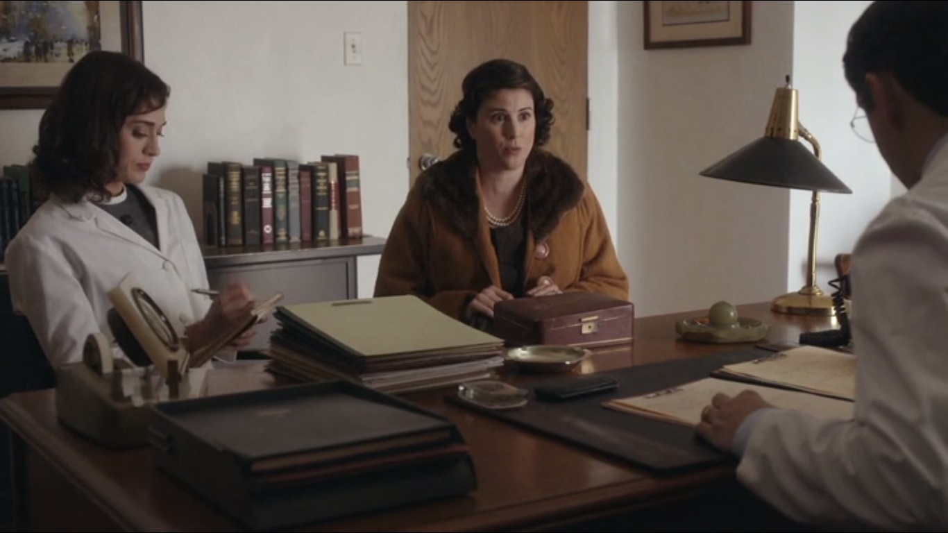 Over at Washington University, Lillian answers the phone because Virginia can’t be bothered. A man in mimeo has a ten minute window between jobs, so Virginia can bring him the paperwork. Virginia wants to talk about Virginia, though. More specifically, she feels that it doesn’t matter what she does on her own time as long as she does a good job. We’ll get into that later. Lillian says that it most certainly matters to Libby Masters. Virginia goes on the defensive, saying that her and Bill’s work is still work, as they’re tracking the same physiological data as their other patients.