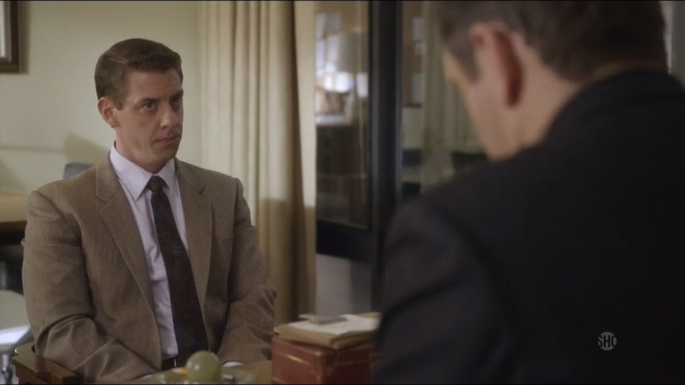 Robert pays Libby a visit to discuss the recent incident. Well, first off, he doesn’t understand the Veiled Prophet event. Sure, it’s tradition, but if people really were really so eager to see a man dress up in robes and a white hood, they could save their money, drive a few hours south and see that for free. Masters of Sex, that is neither funny nor clever. Maybe it’s not supposed to be, but that’s just a bad line. Anyway, the man’s name is Leonard Gilroy and he’s the treasure of the C.O.R.E. office. He also happens to be a history teacher and doesn’t deal with drugs. Some folks decided to rough him up as a warning to others. Robert asks if Libby saw anything since none of the White witnesses will say anything and police aren’t likely to take up a case on the word of a few Negroes. A White witness, particularly a White woman, however, may help the situation. But Libby says that she saw nothing.