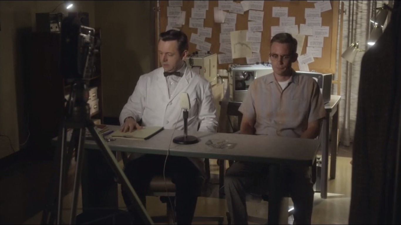 Lester shoots an interview with Bill, who discusses the various causes of impotence. Bill wants to continue, but he wants Lester to sit beside him so he can discuss his role in the study. Bill asks Lester what his most important inspiration is and Lester quickly says it’s the sex study itself. In Hollywood, stories are repeated very often. What Bill and Virginia do is new each day, but it’s about more than just discovery and observation. The work is changing and it’s now also about intervention- working directly with patients.