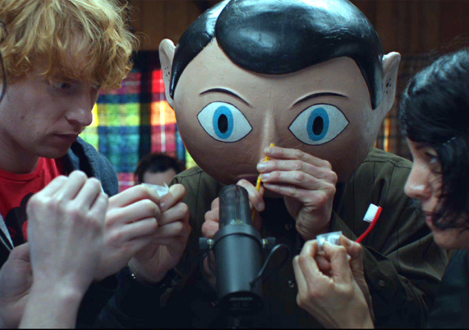 However, your focus will immediately go to the man in the giant, papier-mâché head. This is Frank, and although you can’t see his face, that is indeed Michael Fassbender underneath that huge head. The band’s flavor of music is…different, to say the least. However, the practice session doesn’t go well when the equipment decides to short-circuit. Don’t you hate when that happens?