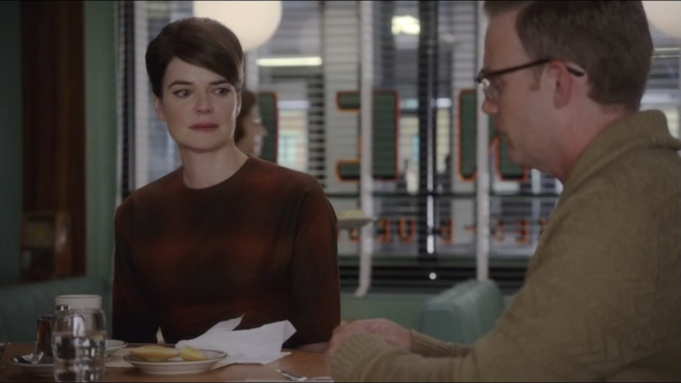 After a brief, congratulatory exchange between Libby and Robert, we cut to Lester finding Barbara at the diner. He apologizes for unintentionally offending her. It’s not his first time, either. He was jealous of people that could believe in a greater power, dating all the way back to grade school when one of his classmates stated that they could just go to confession and be absolved of their sins. It’s not that easy, but there’s something comforting in telling the truth. The two agree that the greatest sin is despair. Lester himself may have given up and tells Barbara about how inability to perform. Despite all of Bill’s help, Lester gave up because he found it too humiliating. Barbara confesses that she believes her condition is due to God punishing her, but the two of them don’t have to despair.