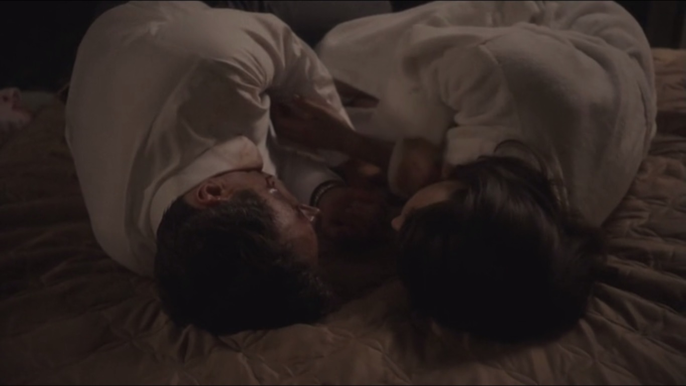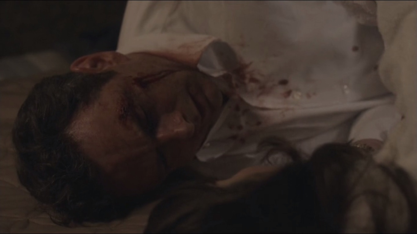 Later on, Bill arrives at the hotel as a bloody mess. He won’t allow Virginia to clean him up and he can’t face Libby like this. He gives Virginia the option to leave, but she doesn’t. She stays by his side on the bed as he admits to abandoning his brother to that monster of a father, and now he’s punishing him for it. And then Bill’s libido wakes up!