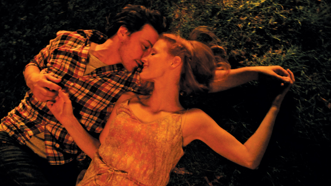 The film begins in a restaurant where we meet our main couple: Eleanor Rigby, played by Jessica Chastain, and Connor Ludlow, played by James McAvoy. Connor asks Eleanor if she’d love him if he didn’t pay for dinner. We’re off to a great start. Luckily, Eleanor has been down this road before. She leaves first. Connor follows, but he’s stopped when one of the waiters reminds him of the check. Connor and Eleanor bolt and make their way into a field where they kiss and watch fireflies in the night.