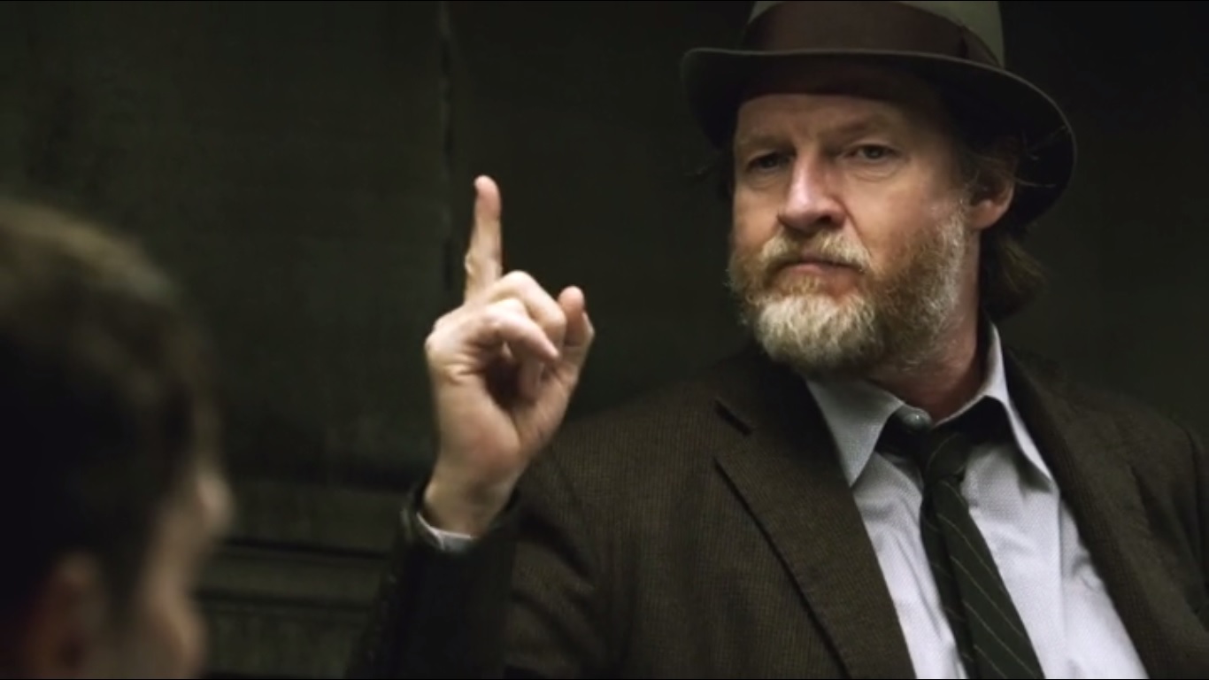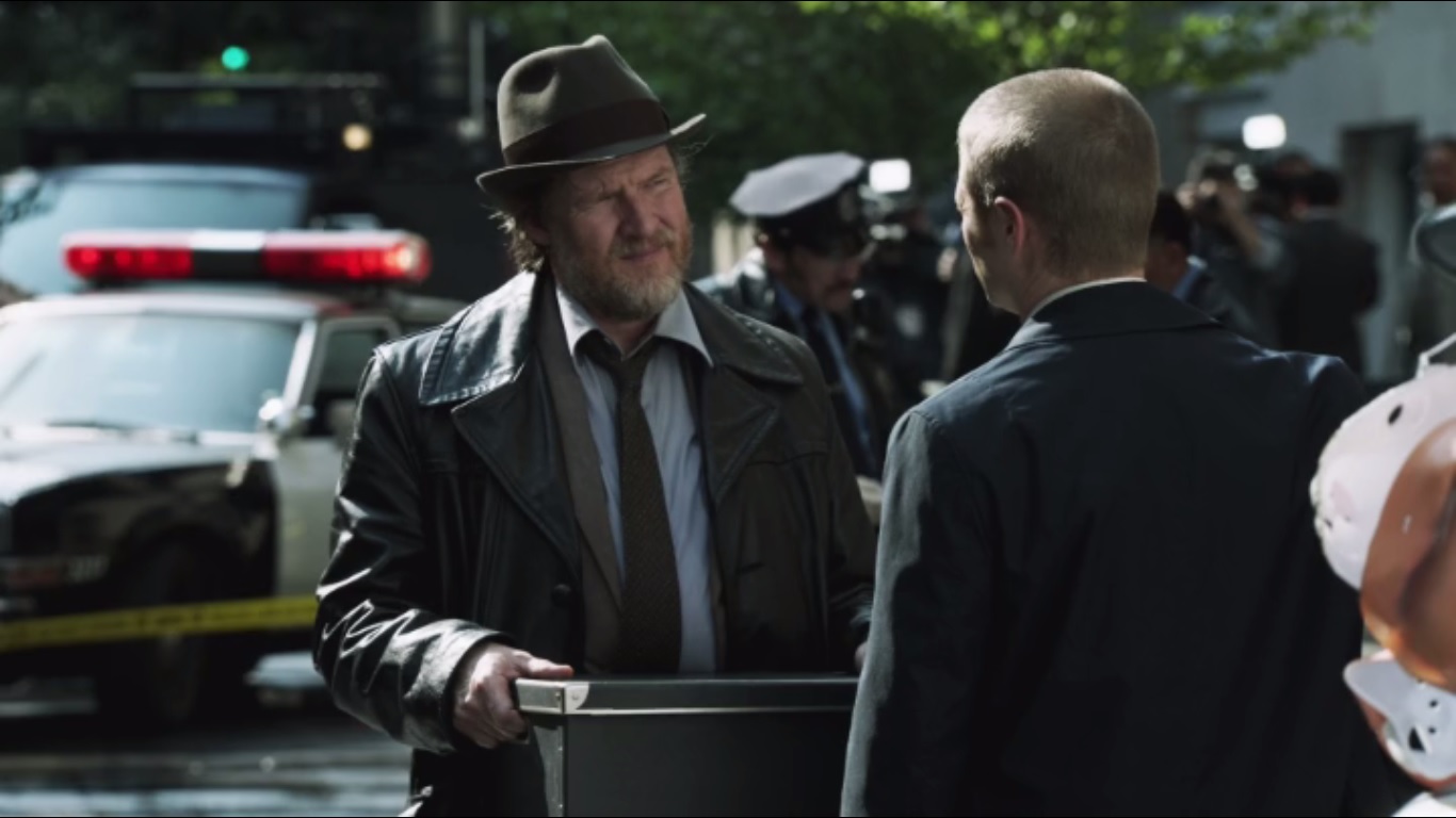At the police department, we’re introduced to Lieutenant Bill Cranston, played by James Colby, as he meets up with the boy scout known as James Gordon. Cranston introduces Gordon to a friend of his: O’Brien- a statue he received from the Gotham Chamber of Commerce for his service. This, he says, is the best interrogator on the force.