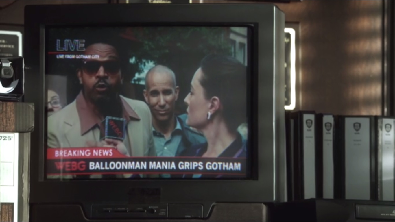 Bruce and Alfred watch the report about the Balloonman, but Bruce can’t help but get transfixed when the reporter asks who will defend the people of Gotham.