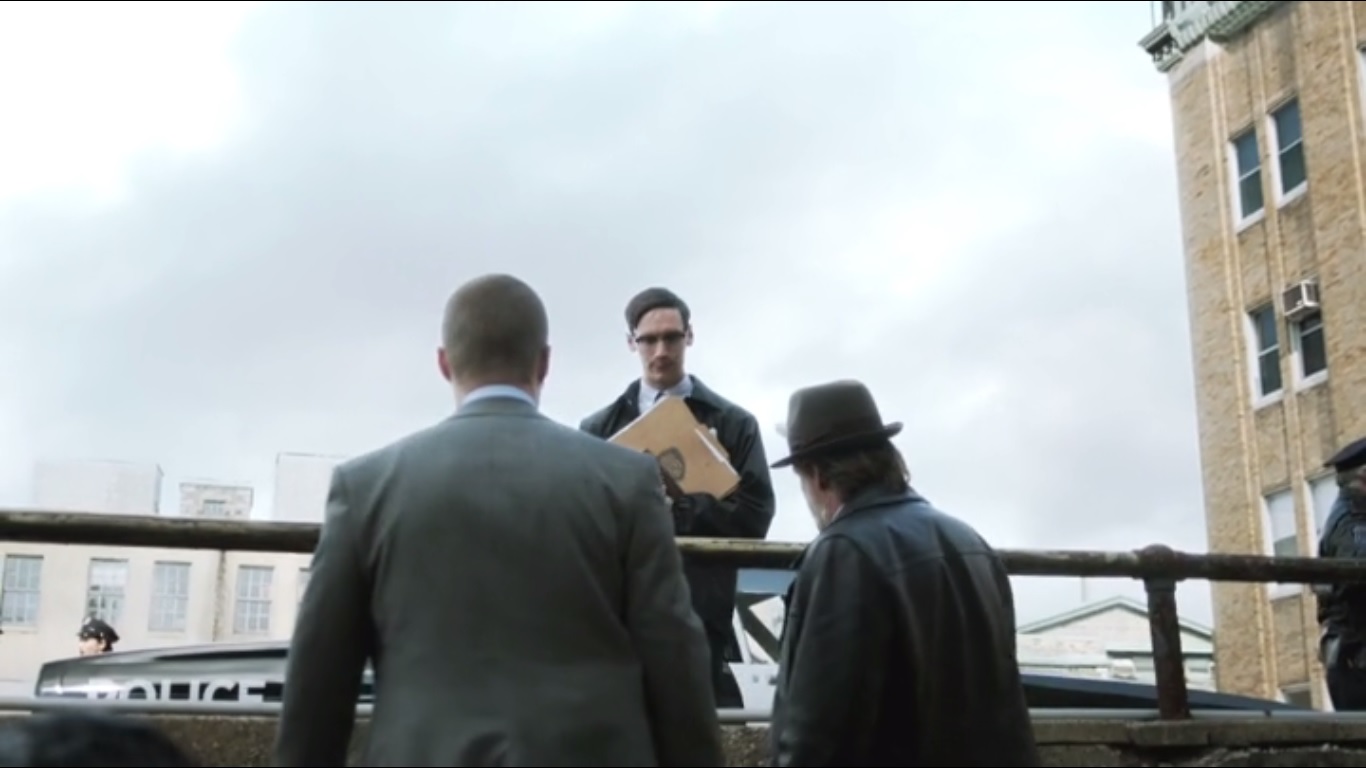 Bullock and Gordon head to the Gotham State Penitentiary and speak with Minks, played by Brad Calcaterra. Bullock delivers two cartons of cigarettes, so this must be important. Minks guesses the hitman’s weapon of choice and has even heard of him by reputation. He identifies Gladwell by name, telling the detectives that he works at the Lanky building in midtown.