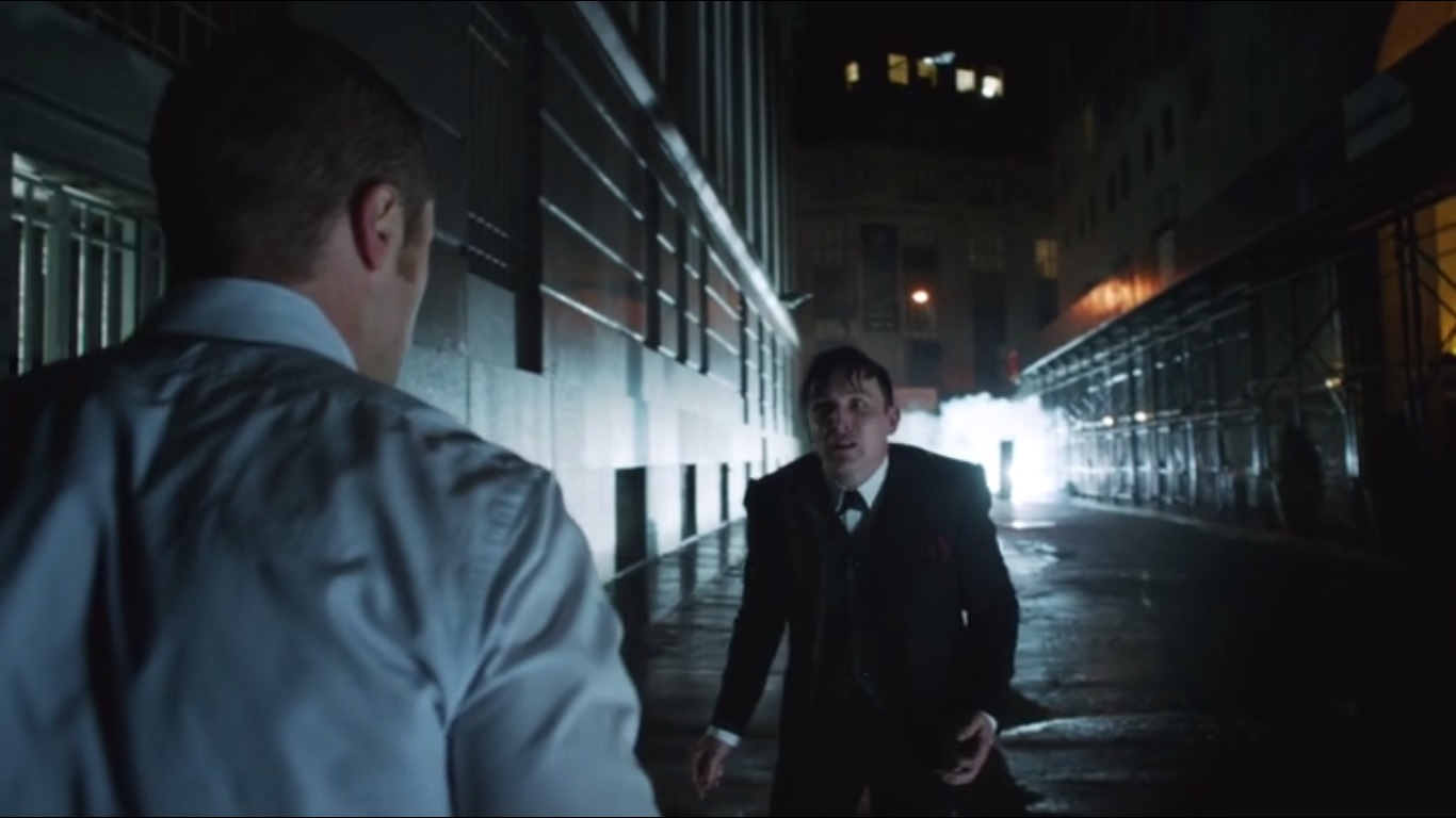 The episode begins directly following the ending of “The Balloonman,” with Oswald showing up at Barbara’s doorstep. Oswald attempts to make small talk with Barbara under the guise of being an old work friend named Peter, but Jim cuts the conversation short and takes Oswald outside.