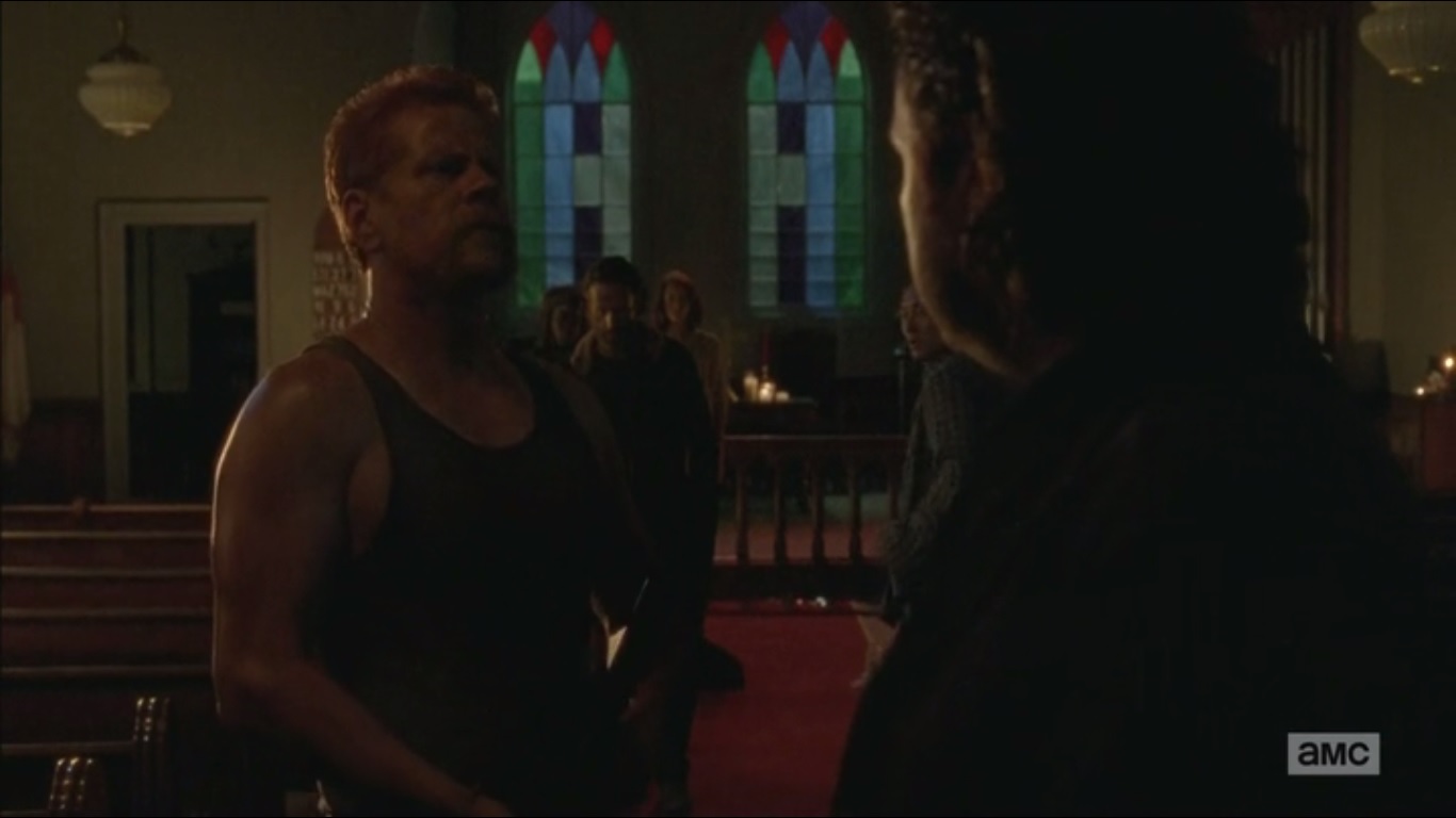 Gabriel swears that he has no connection with the recent disappearances, but he does reveal something he’s not proud of: since the breakout, he continued to lock the church doors. Yes, this kept him safe inside, but it also kept the congregation goers outside. Night after night they would beg Gabriel for shelter. Even as the dead approached, the people continued to scream and beg for mercy. They damned him all while being consumed by walkers. When the screaming stopped, Gabriel buried them all. Now he feels that these people have come to exact revenge as a punishment from God.