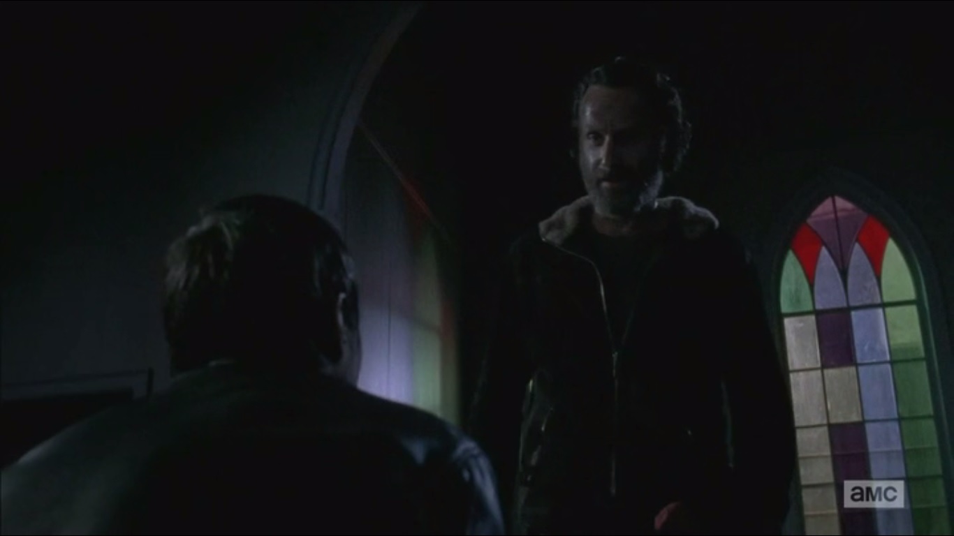 Rick asks Gabriel about the location. The closest would be an elementary school that’s about a 10 minute walk from the church. The others discuss Bob’s condition and how soon it could be until he turns. After all, Jim lasted two days before everyone left him.