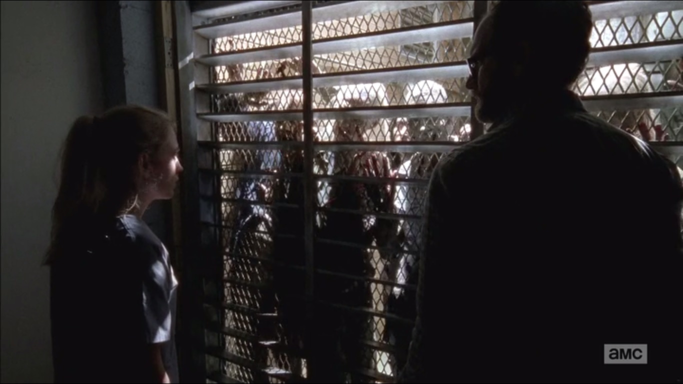 I always enjoy when The Walking Dead shows us people who have been surviving on their own because it reminds us that this world is much bigger than Rick and pals. Like the folks who wanted Rick’s bag of guns and kidnapped Glenn in Season One, these people have few medical supplies at their disposal and should not last very long, but they keep on living in the hopes that someone will help solve this zombie problem. In addition, showing other survivors opens up the universe this series has created and introduces new storylines and characters to engage us.
