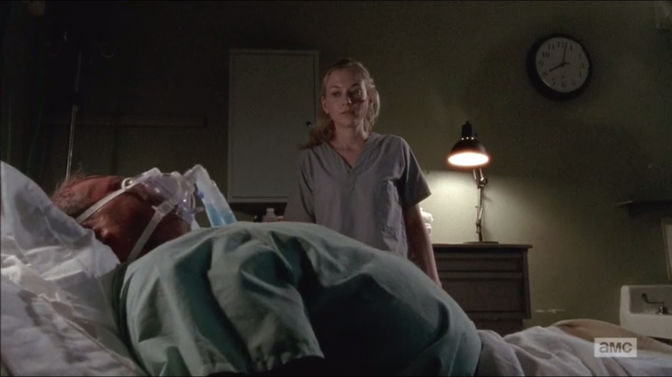I agree with your assessment of Beth’s performance. She showed much more strength this episode than previously. It’s interesting that her common line from season 4, “we’ve all got a job to do”, was quite similar to what Dawn was putting into practice at the hospital, but on a more sadistic level of course. Great analogy too pointing out that a hospital is the setting of a caste system.