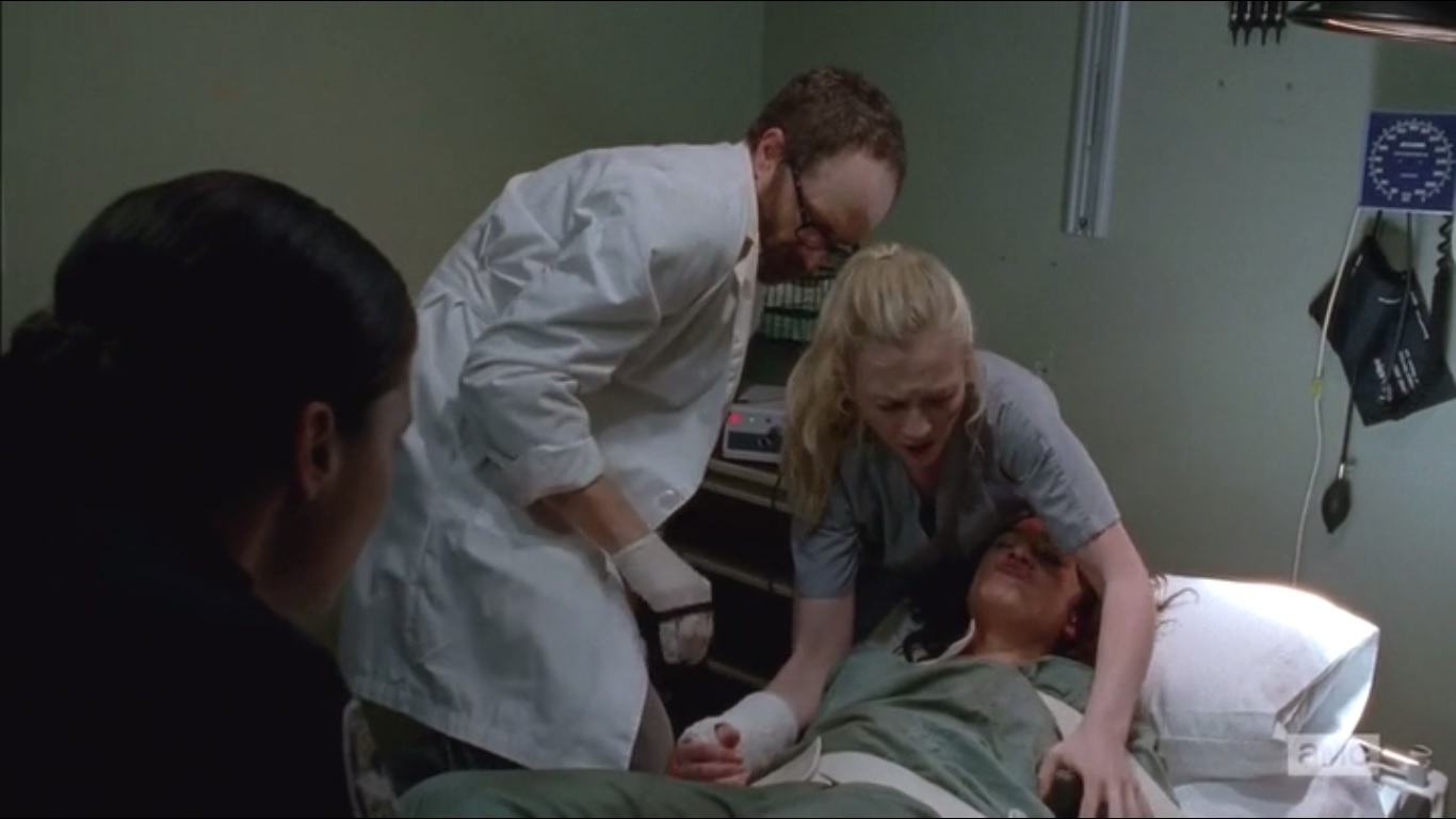 Beth needs a serious reality check, something to snap her out of apathy. She accepts that everyone is going to die, but she doesn’t do a good job of pulling her weight and proving why the hospital folks should keep her around. Dawn certainly doesn’t seem to think much of her, so just let the girl leave.