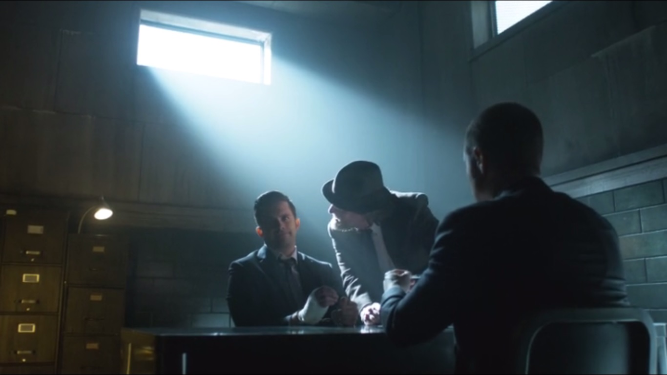 Bullock prevents a fight from breaking out and pulls Gordon aside. He tells Gordon that he has every right to be angry, but he has to play along to get along. Keep in mind that Falcone let them live. Bullock suggests that Gordon let the doctor out, and then they’ll get more work done tomorrow. Gordon considers this, but ultimately doesn’t let the doctor walk.