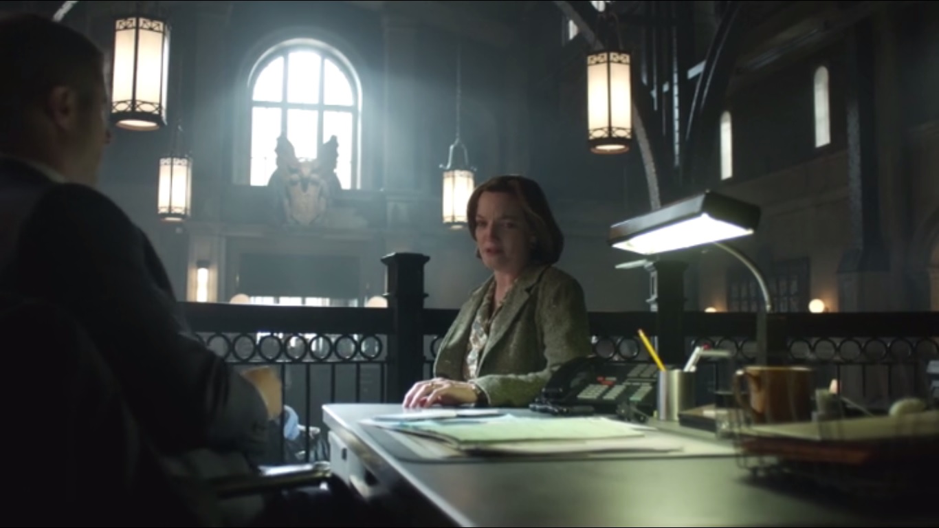 Back at GCPD, Bullock isn’t hearing back from Gordon. He needs to check some addresses, but gets no help from his fellow officers. This prompts him to call everyone’s attention. They may dislike Gordon, but damn it, he’s still a cop and no one stood up for him when he needed it. That won’t happen again. It takes a moment, but Captain Essen is the first to lend Bullock a hand. Soon, others join in.