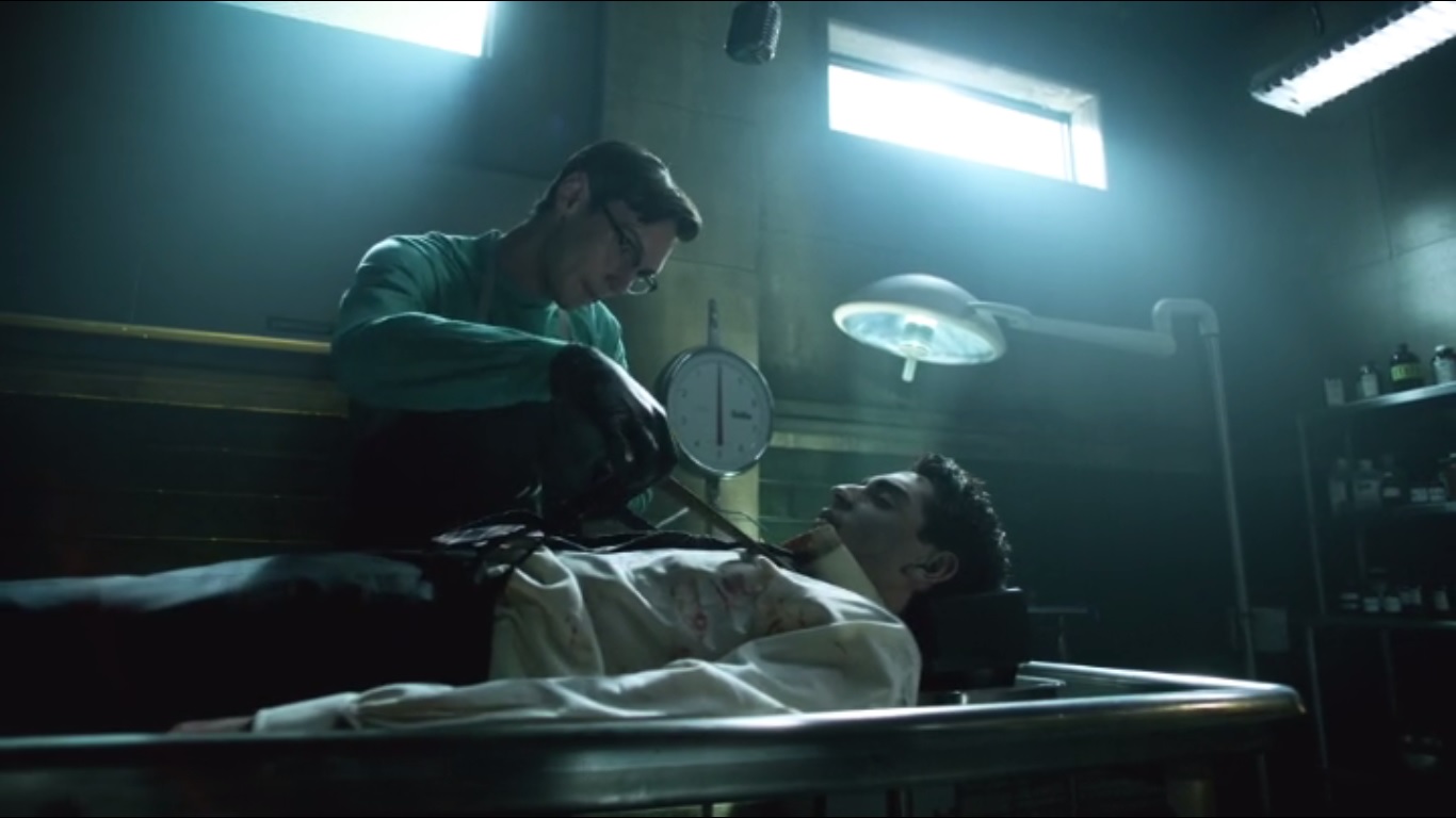 Back at GCPD, Nygma works on the body. Oh, by the way, what do a dead man, a cruise ship and an emu have in common? That’s right. Nothing. I certainly hope Nygma’s riddles and questions are better than this when he becomes The Riddler, if he ever does in this universe. Just as Nygma makes a discovery, another doctor storms into the room. Looks like Nygma wasn’t supposed to be here.