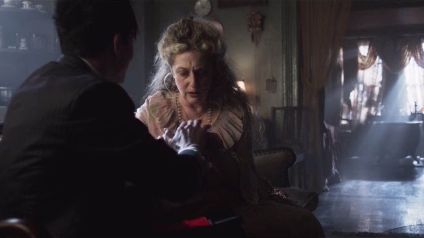 Since Fish didn’t like the broach, Oswald gives it to his dear, sweet mother instead. When asked about his damaged hand, Oswald tells Mom that someone was just mean to him. His success makes other people envious and the restaurant business can be troubling at times. The problem is that the person who did this to Oswald isn’t afraid of her boss. Mom understands. When she was young, her teacher did nothing to stop her when she had to deal with another student, Magda. Magda, it turns out, had ‘private lessons’ with the teacher. Well, Mom put a stop to that. Oh, not by revealing the lessons, but by denouncing Magda’s father to the secret police. Go, Mom!